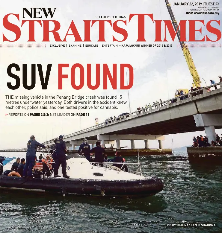 GEORGE TOWN The Mazda CX-5 SUV which plunged into the sea after crashing with another car at Kilometre 40 of the Penang Bridge early yesterday has been located.